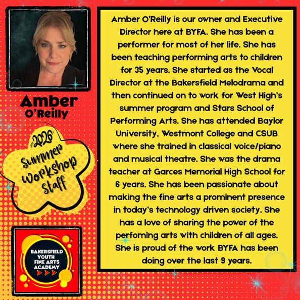 Bakersfield Youth Fine Arts Academy (BYFA) is an organization that specializes in the education of youth in the visual and performing arts and the enrichment of our community through live performances. Due to lack of funding, fine arts programs are generally the first to be eliminated from many schools' standard learning curriculum. BYFA's primary goal is to fill that void. In a technology driven age, BYFA has a strong conviction to keep the soul of the arts alive by offering it to the future...our children. The enrichment of our children in the arts has benefits of improving acting, singing, dancing, painting, drawing and sculpting skills. However, the most fundamental benefits of studying the fine arts are promoting creativity, gaining social skills by working in teams, building self-confidence and encouraging individuality in self-expression. BYFA views these benefits as invaluable assets to mold children into well-rounded, successful adults.